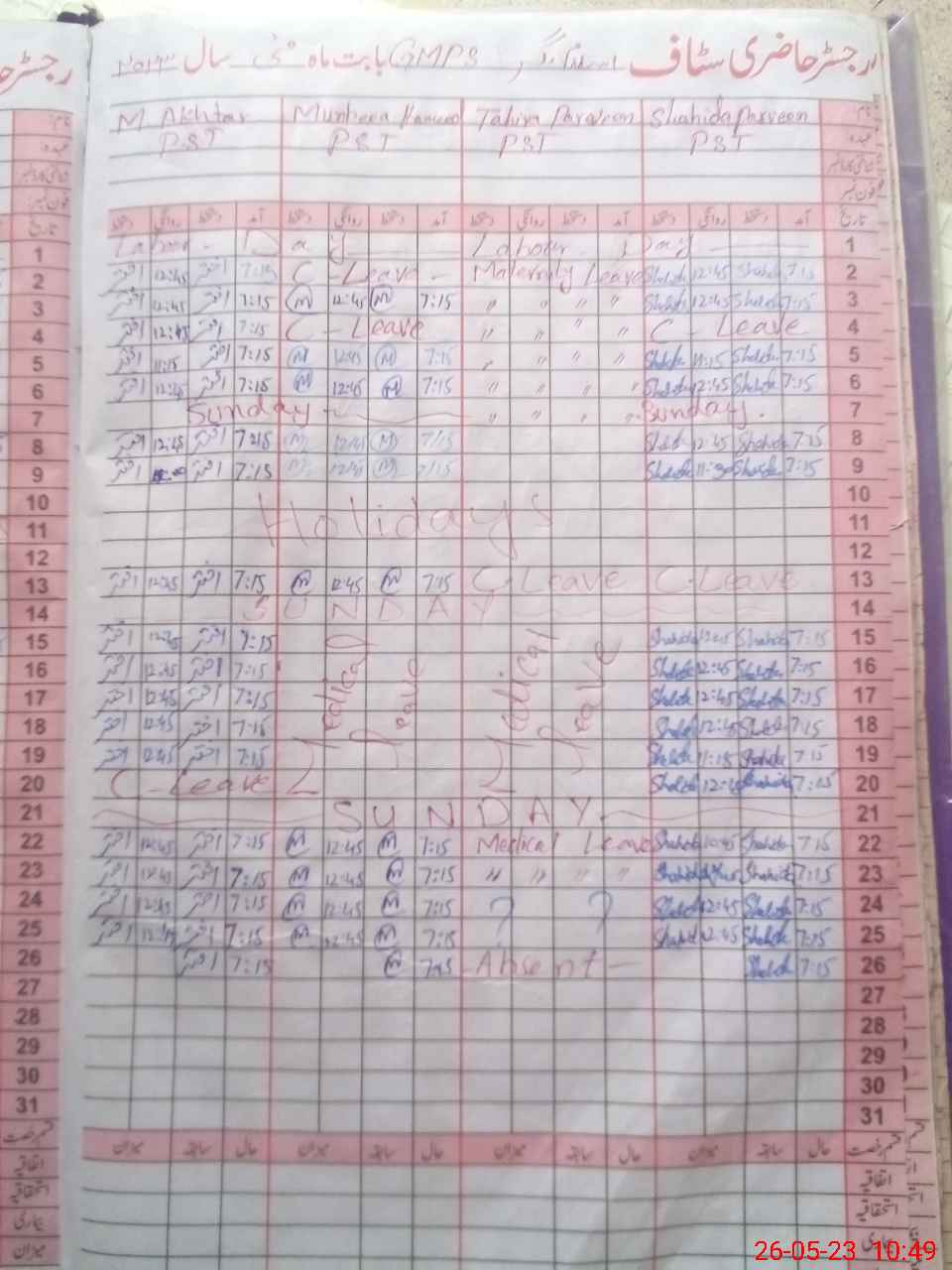 | 33**** | Ha**** Ta**** Pa**** | PST | Regular | 0 | 0 | 0 | 0 | 0 | 0 | 0 | 0 | 0 | Absent (Un-Authorized) |