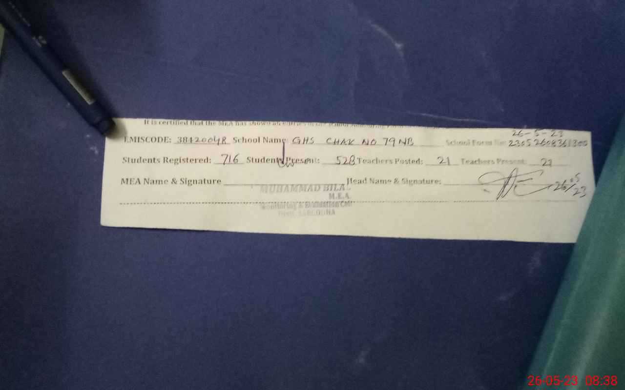 | EMIS Code: 38420048 | Name of School: GHS CHAK NO.79 NB SARGODHA | |||