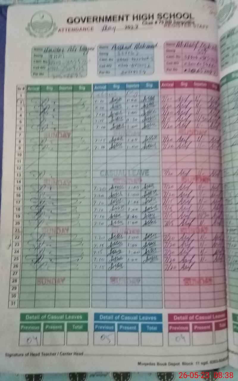 | Name: HA**** AL**** KA**** Designation: (School Headmaster's/Headmistress's) Sr. HEADMASTER Phone/Cell Number: 03**** |