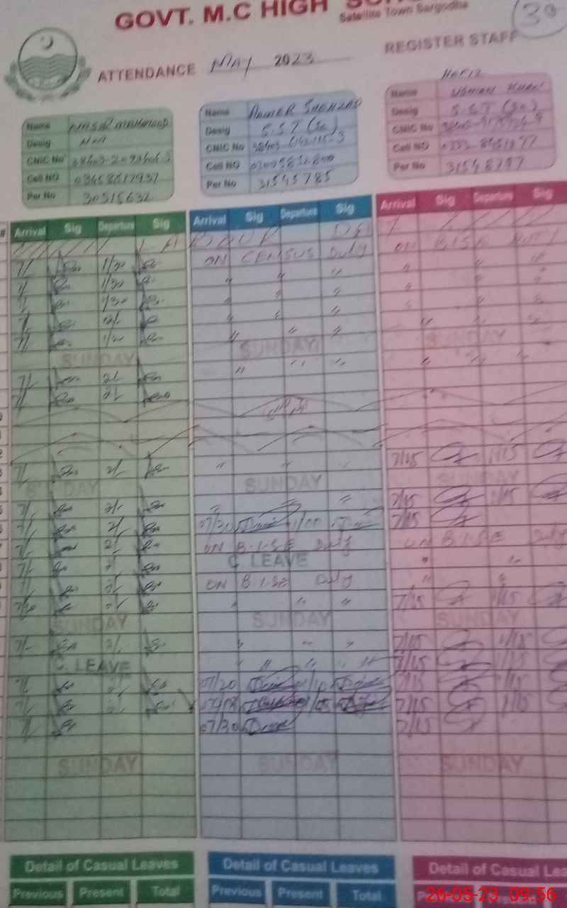 | CNIC | Full Name | Designation | R/C | Absence During Last Calender Month |