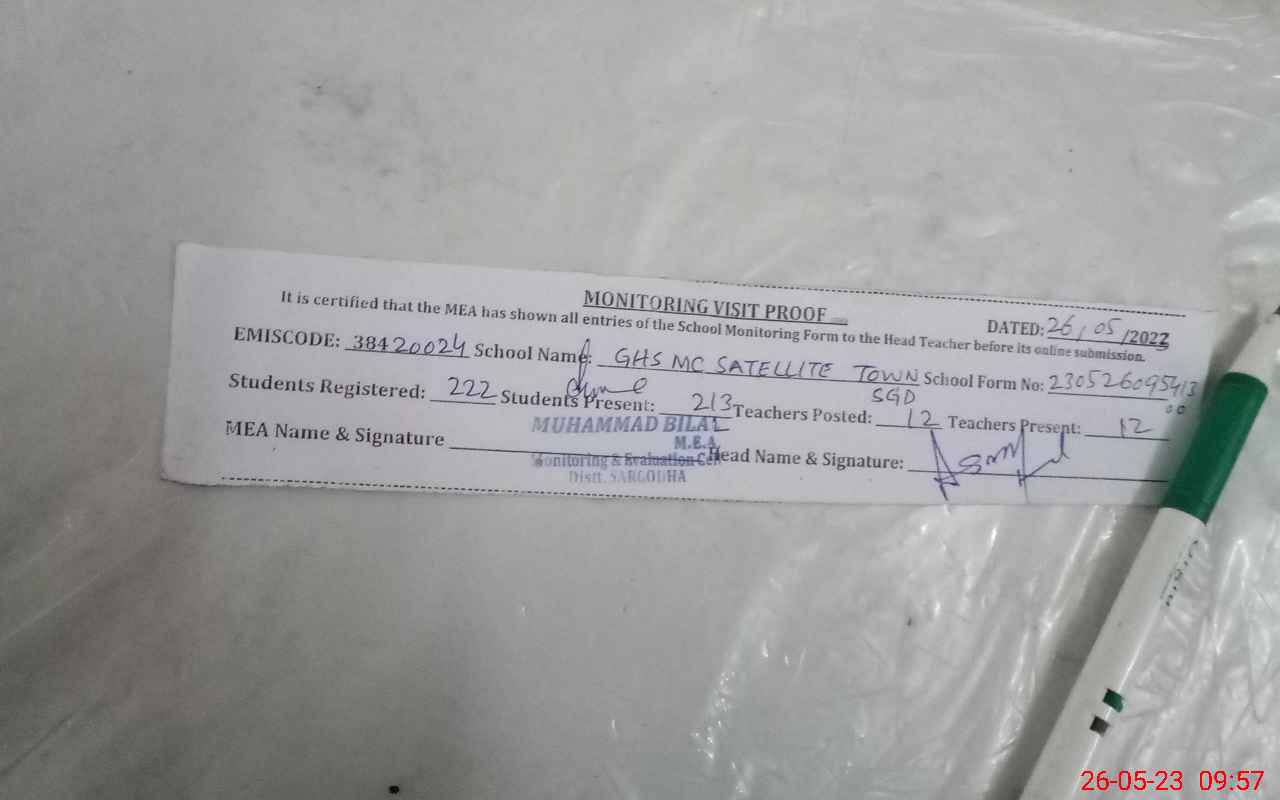 | EMIS Code: 38420024 | Name of School: GHS MC SATELLITE TOWN SARGODHA | |||
