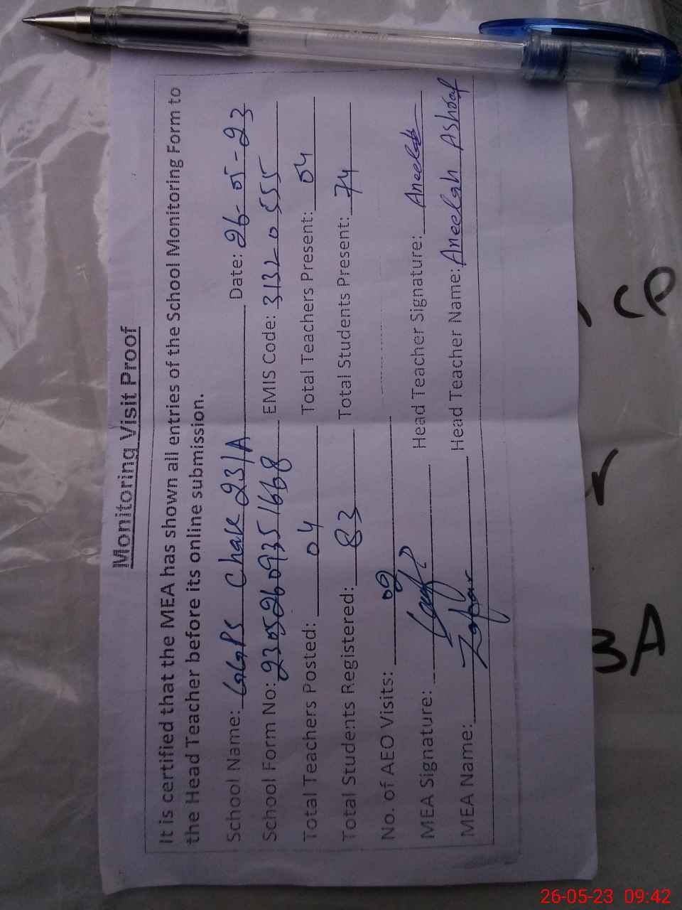 | EMIS Code: 31320555 | Name of School: GGPS CHAK NO 23/A | |||