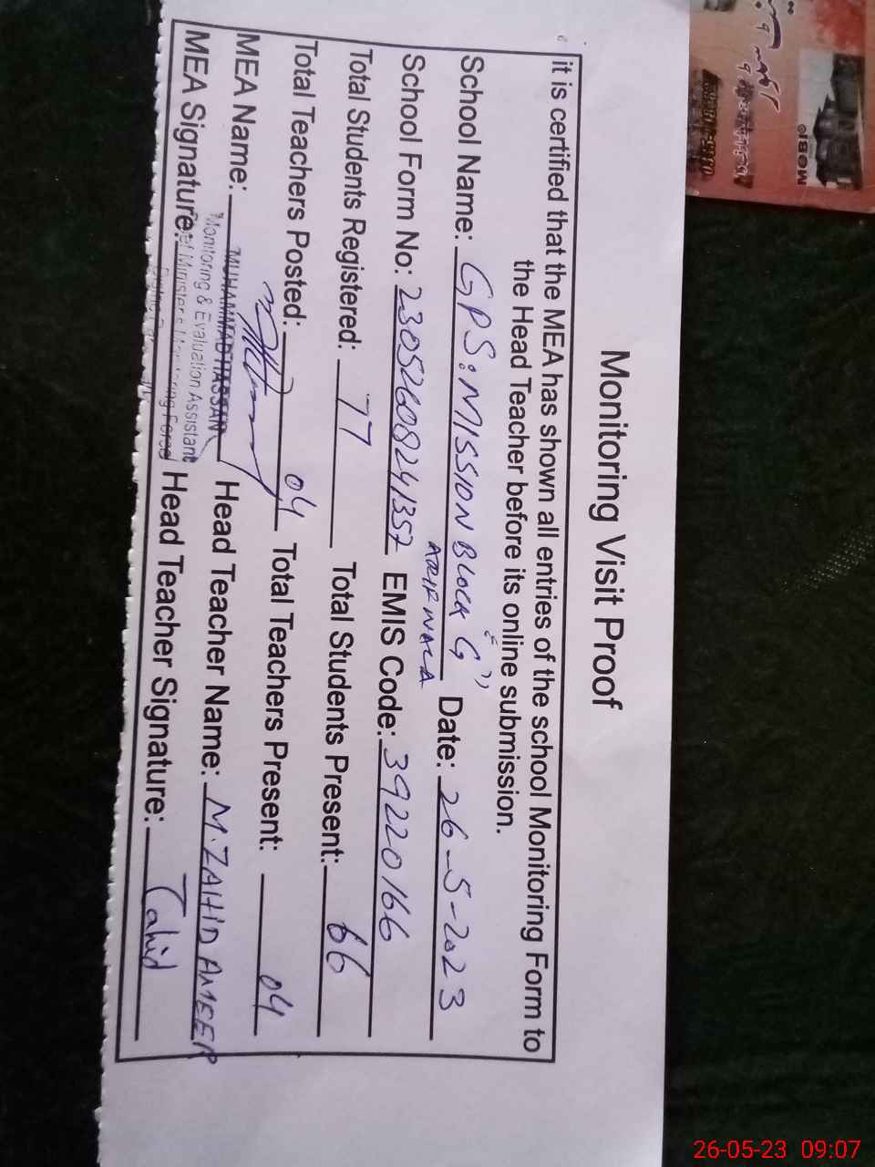| EMIS Code: 39220166 | Name of School: GPS MISSION BLOCK G | |||
