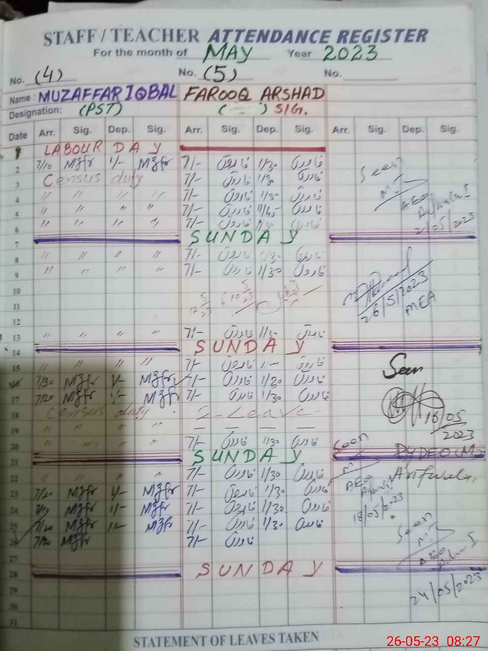 | Name: SY**** MU**** ULHA**** Designation: (School Headmaster's/Headmistress's) PST Phone/Cell Number: 03**** |