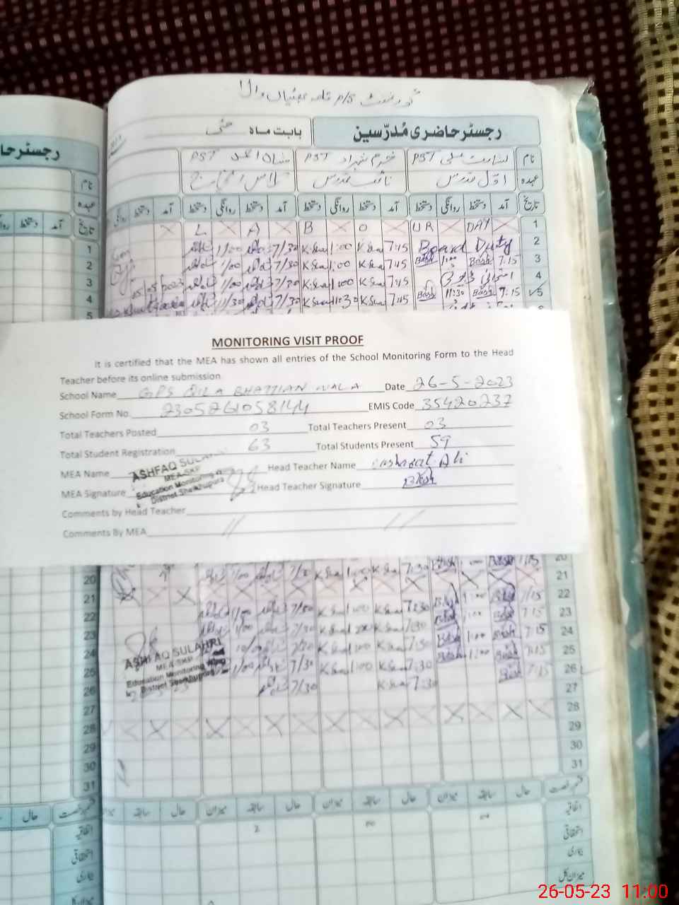 | Attendance Register | Head Teacher | MEA with School | Visit Proof |