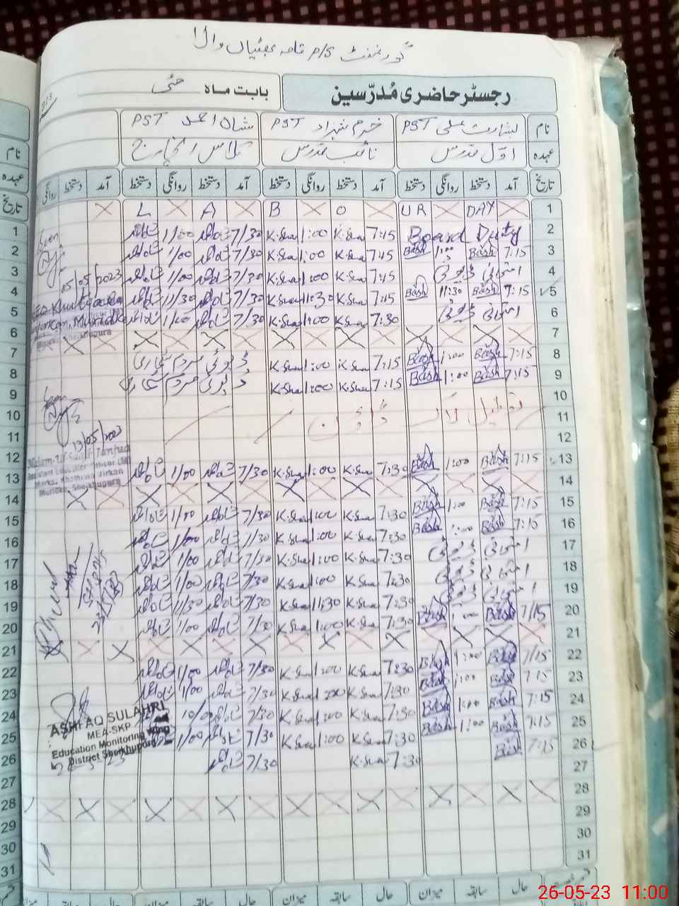 | Name: Kh**** Sh**** Designation: (School Headmaster's/Headmistress's) PST Phone/Cell Number: 03**** |