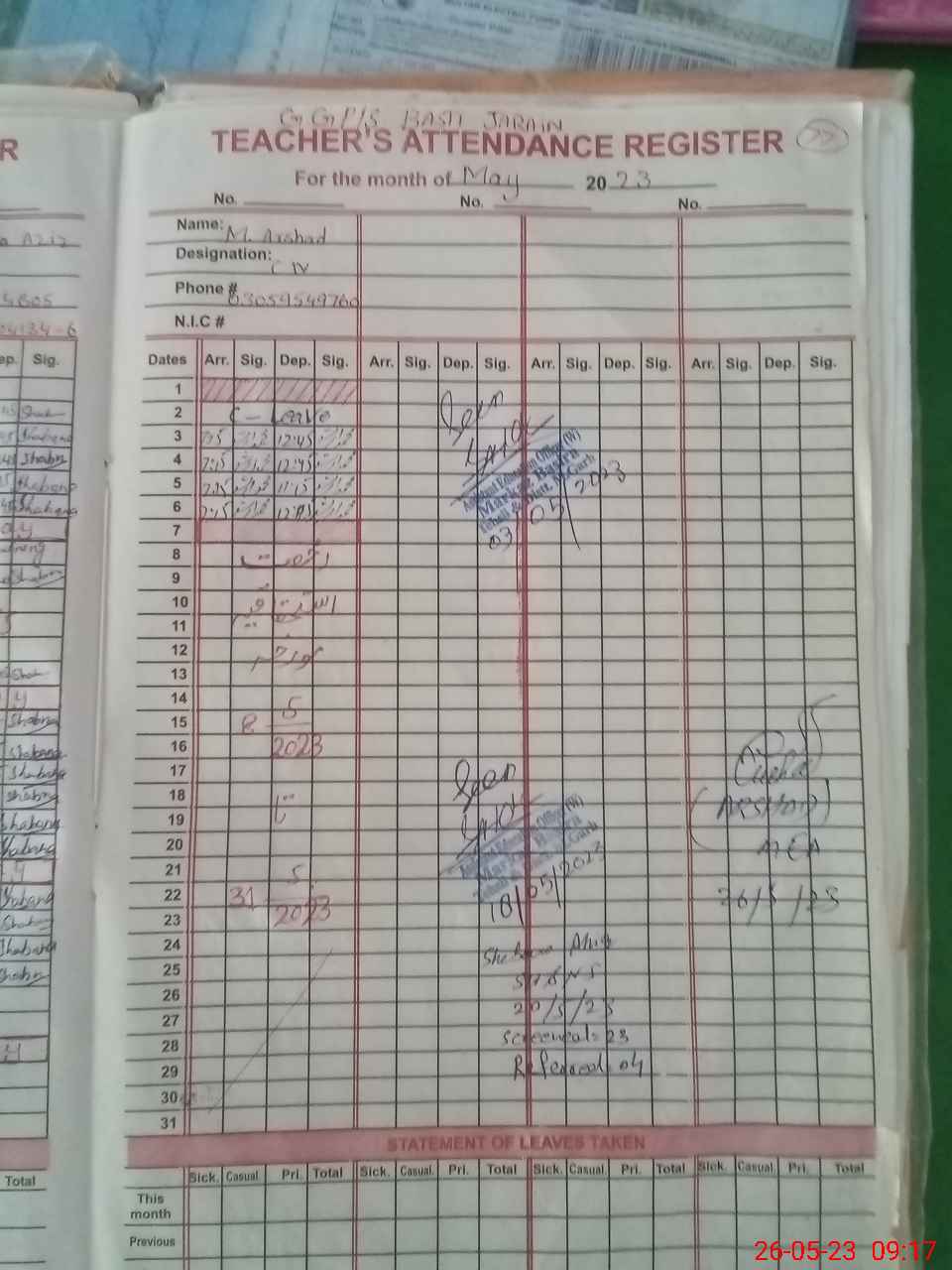 | Name: Ba**** Bi**** Designation: (School Headmaster's/Headmistress's) PST Phone/Cell Number: 03**** |