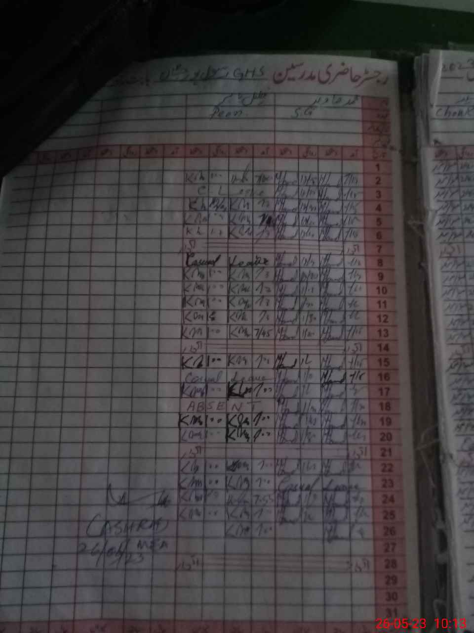 | CNIC | Full Name | Designation | R/C | Absence During Last Calender Month |
