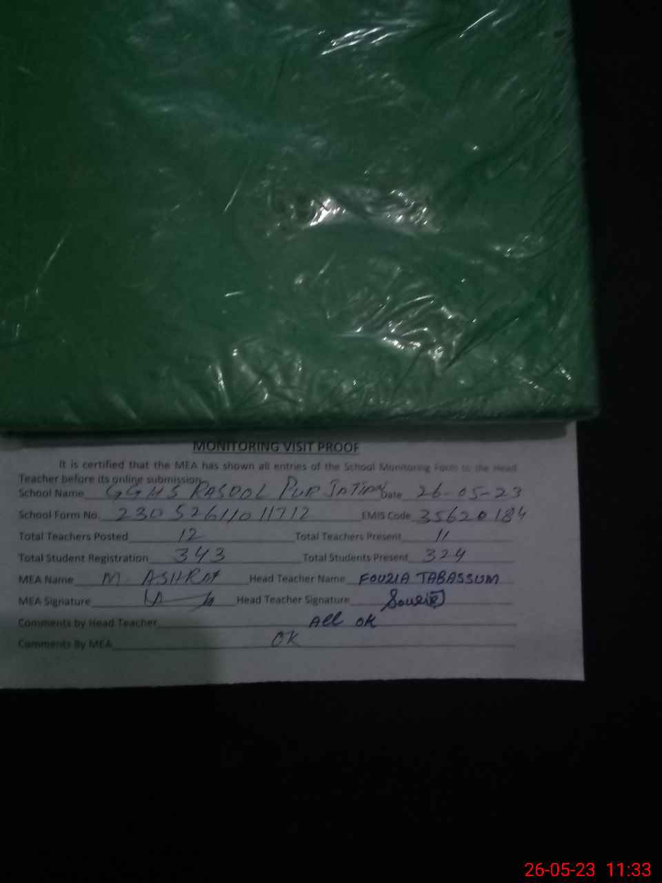 | Attendance Register | Head Teacher | MEA with School | Visit Proof |