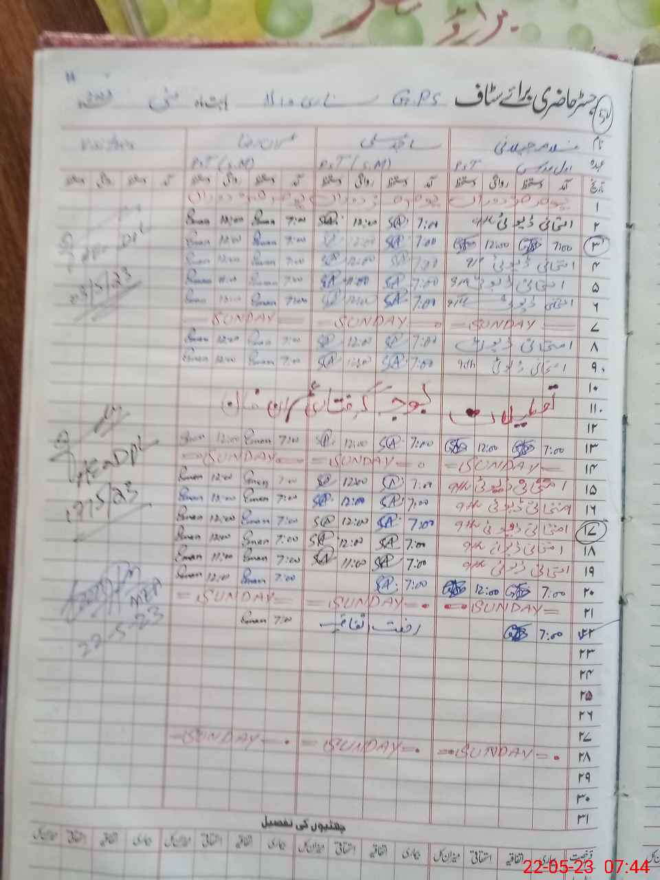 | CNIC | Full Name | Designation | R/C | Absence During Last Calender Month |