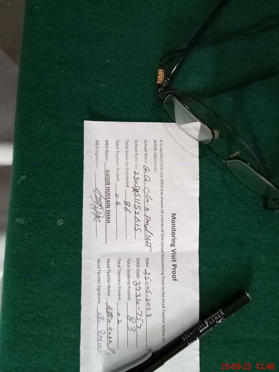 | Attendance Register | Head Teacher | MEA with School | Visit Proof |