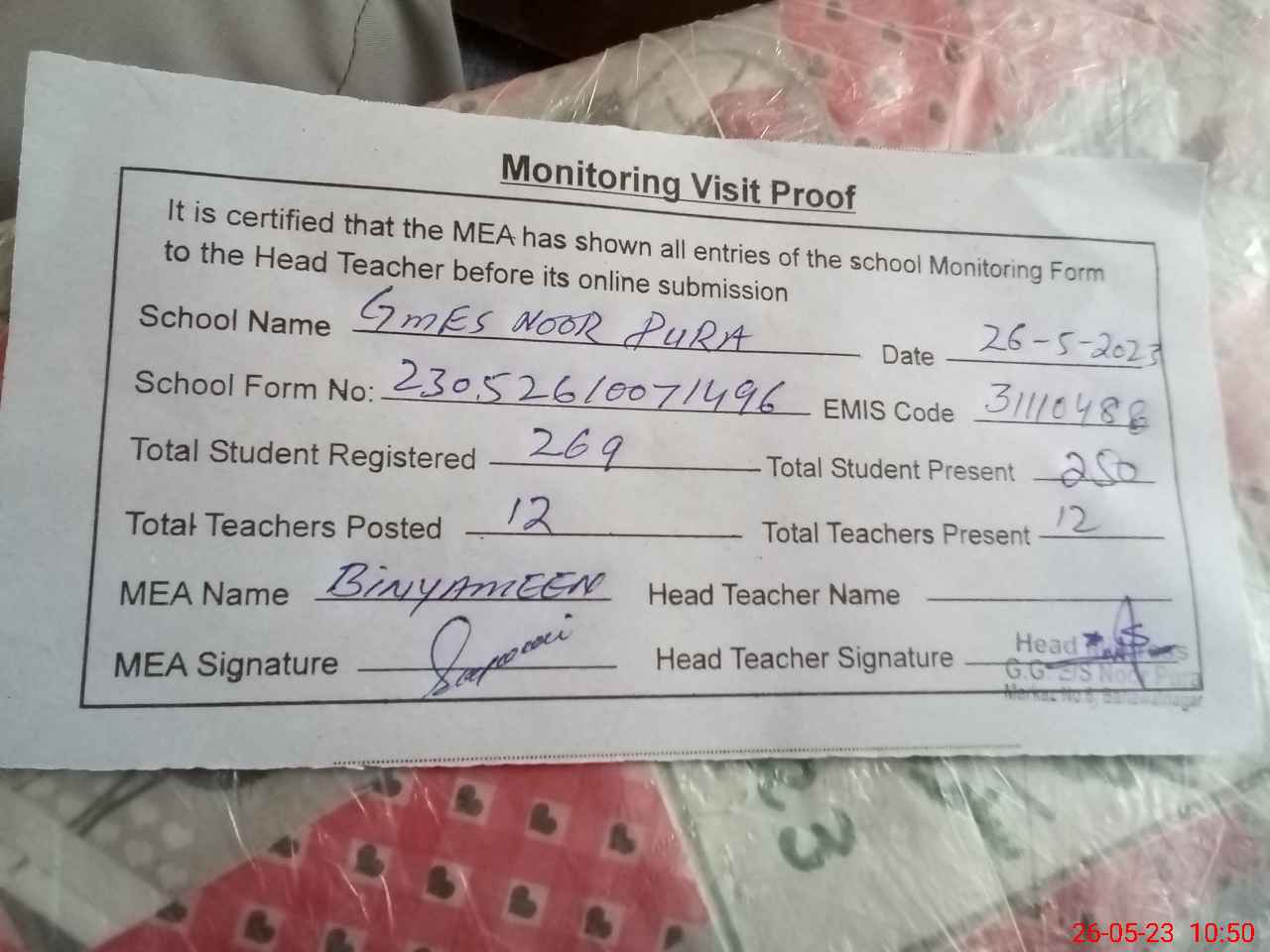 | EMIS Code: 31110488 | Name of School: GGES NOOR PURA NO 1 | |||