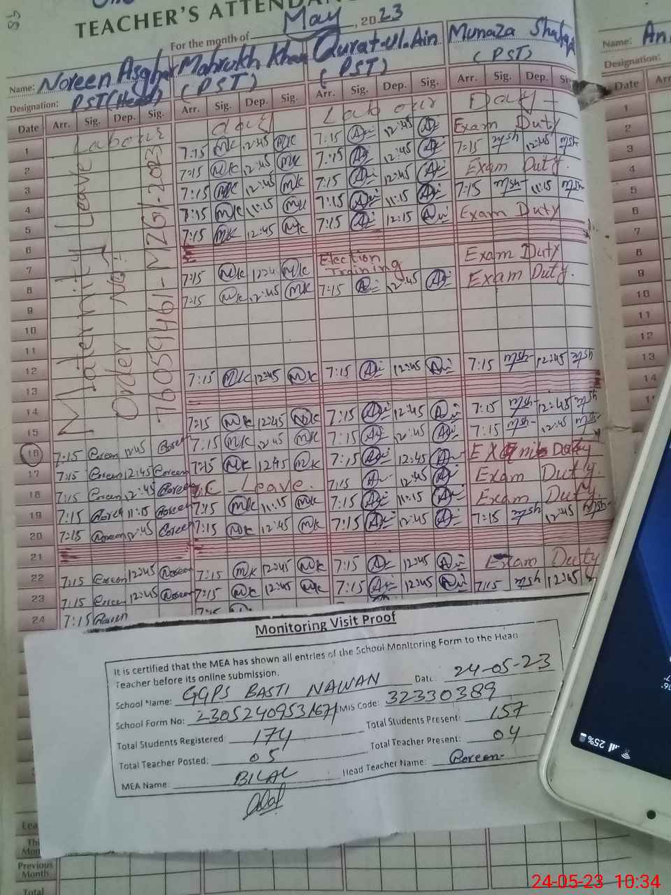 | Attendance Register | Head Teacher | MEA with School | Visit Proof |