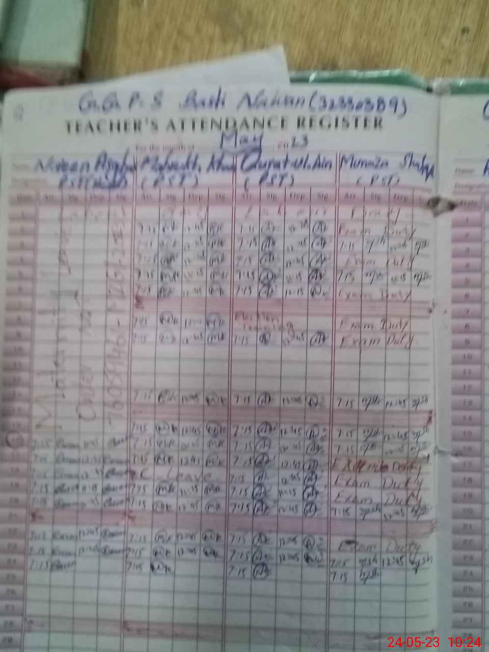 | Leave | Duty | Absent | Maternity | Medical | Ex- Pak |