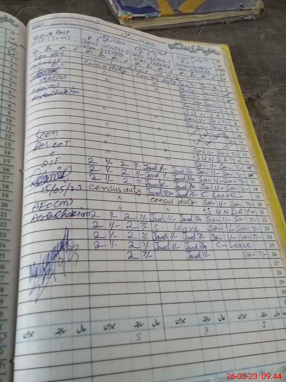 | CNIC | Full Name | Designation | R/C | Absence during last cal. month |