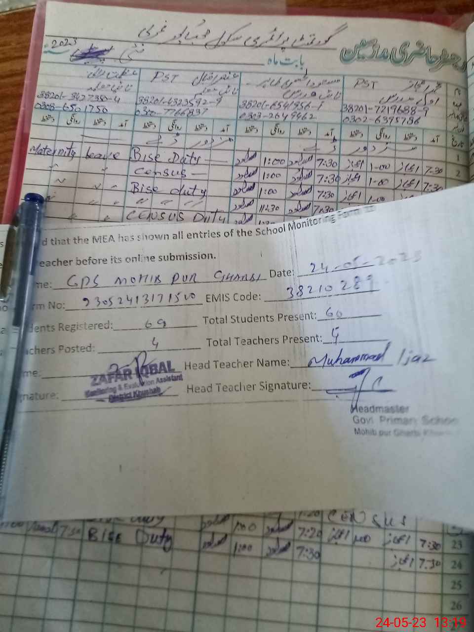 | EMIS Code: 38210289 | Name of School: GPS MUHIB PUR GHARBI | |||