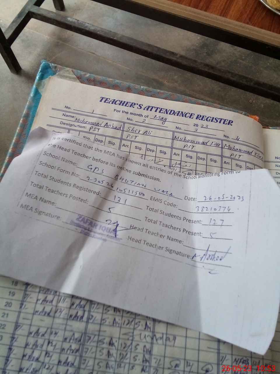 | Attendance Register | Head Teacher | MEA with School | Visit Proof |