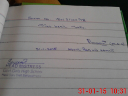 | Name: MU**** MA**** Designation: (School Headmaster's/Headmistress's) SST Phone/Cell Number: 03**** |