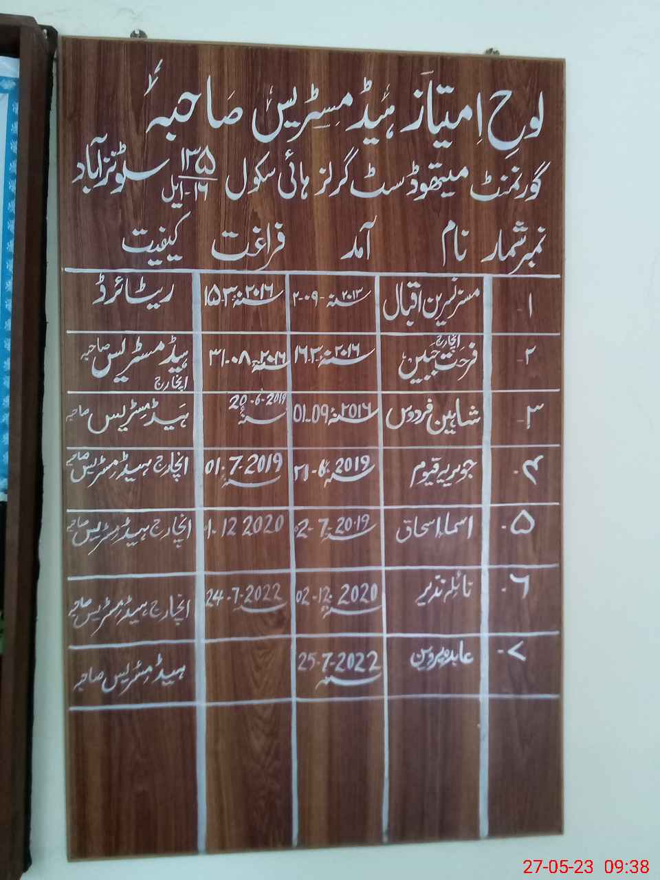 | EMIS Code: 36430044 | Name of School: GGHS 135/16-L, STUNZABAD, MIAN CHANNU | |||