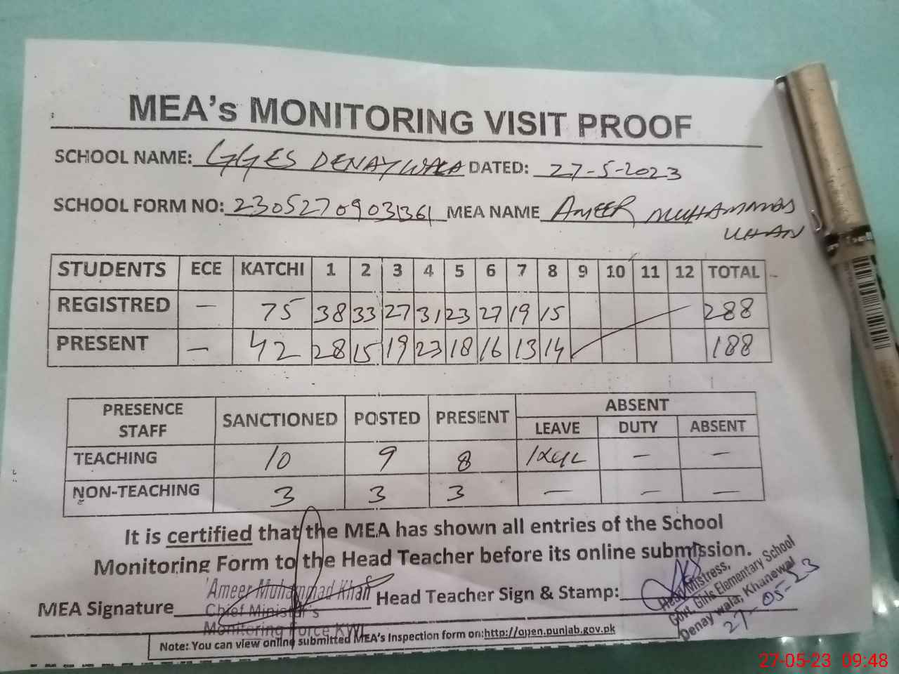 | EMIS Code: 36420105 | Name of School: GGES DENAY WALA, KHANEWAL | |||