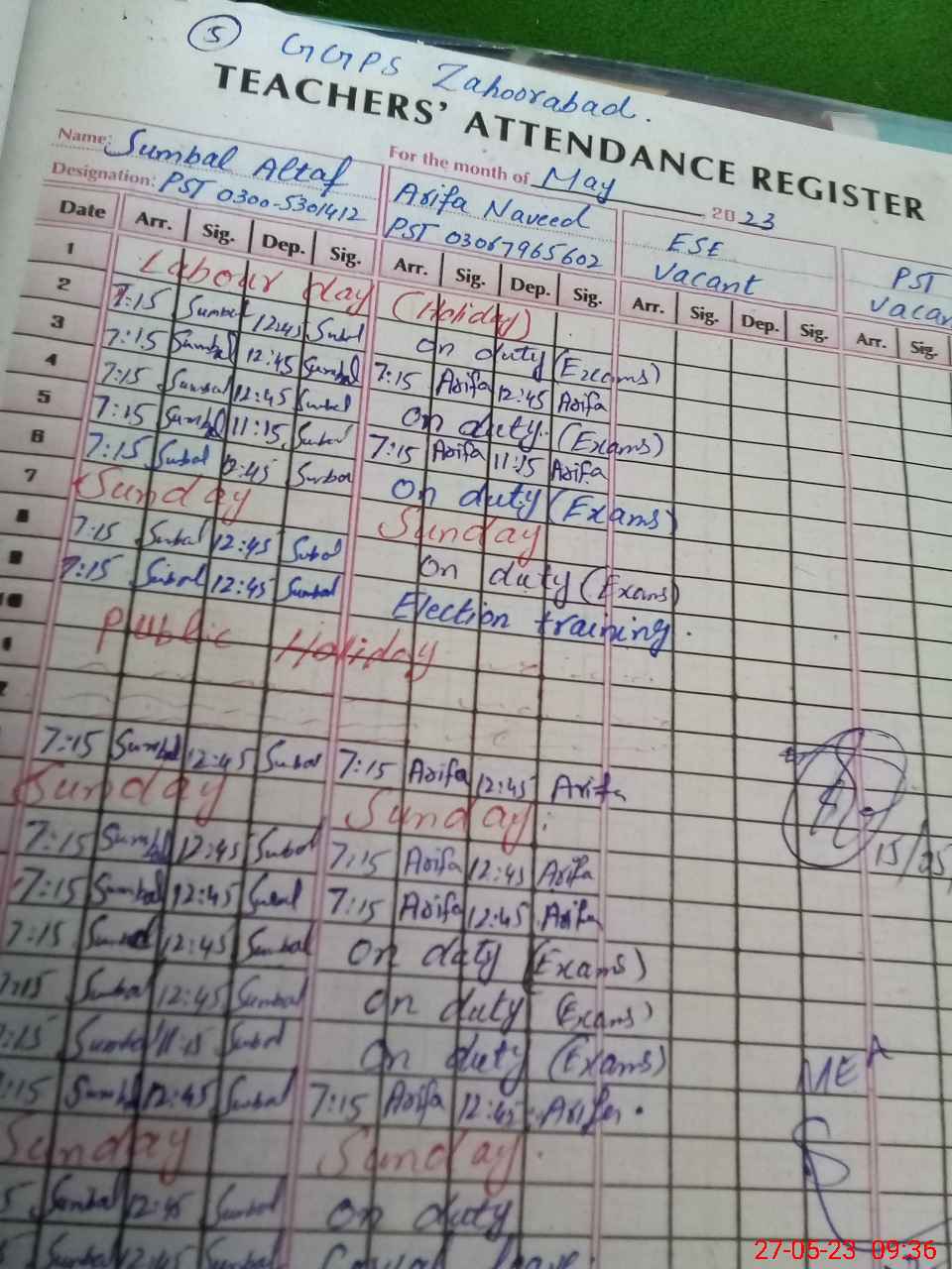 | 36**** | Ar**** Na**** | PST | Regular | 0 | 0 | 0 | 0 | 0 | 0 | 0 | 0 | 0 | Exam Duty |