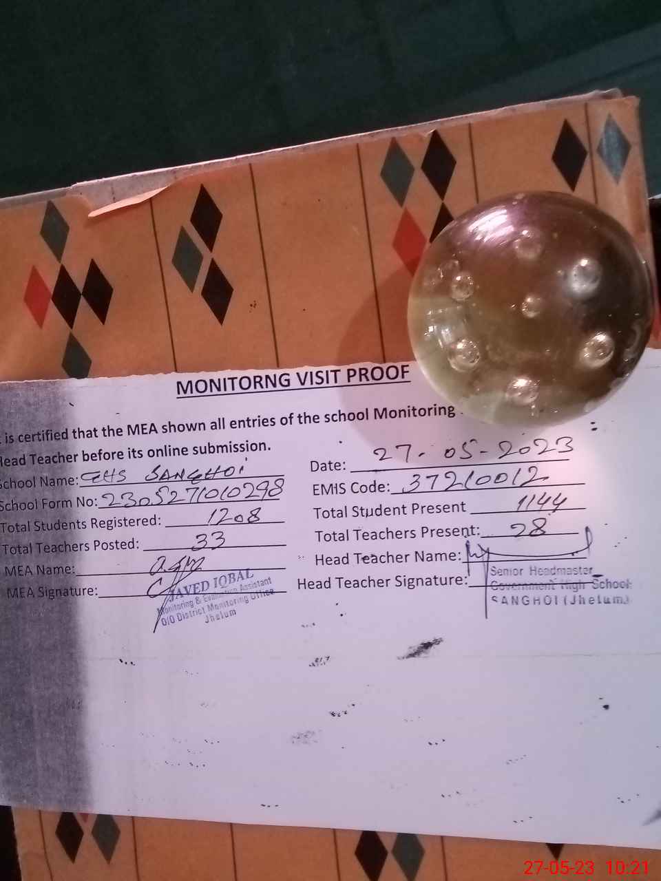 | EMIS Code: 37210012 | Name of School: GHS SANGHOI | |||