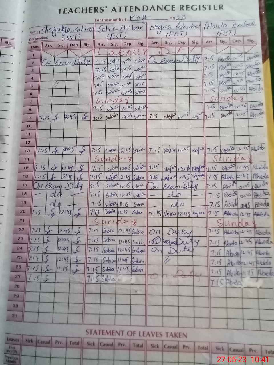 | Leave | Duty | Absent | Maternity | Medical | Ex- Pak |