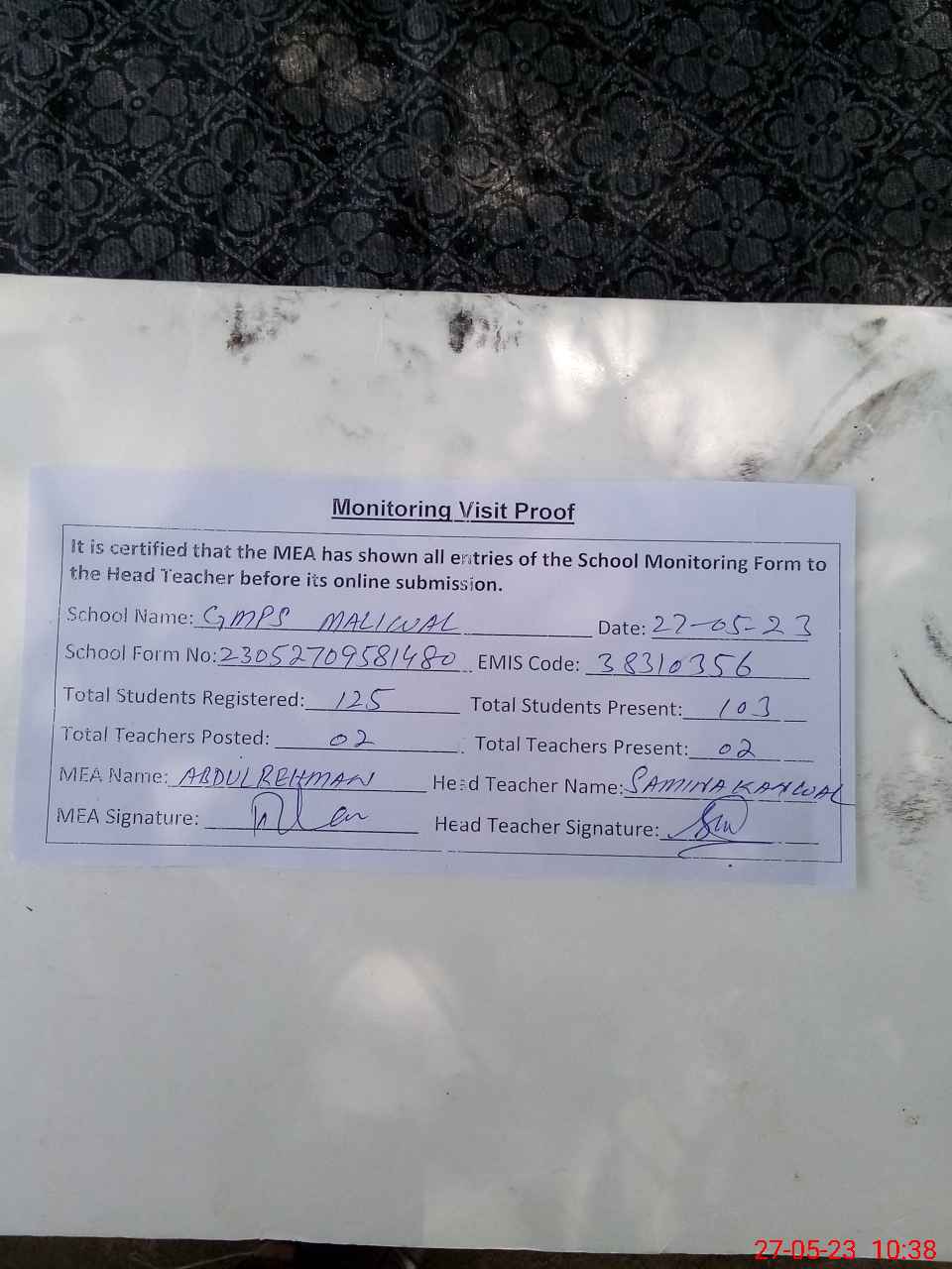 | EMIS Code: 38310356 | Name of School: GMPS MALI WALL | |||