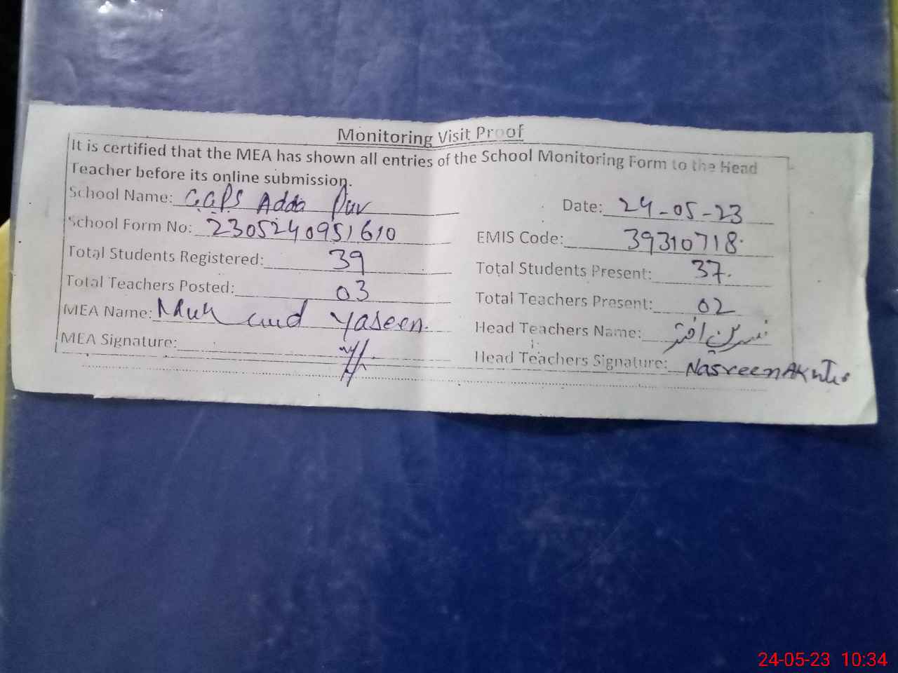 | EMIS Code: 39310718 | Name of School: GGPS ADDA PUR | |||
