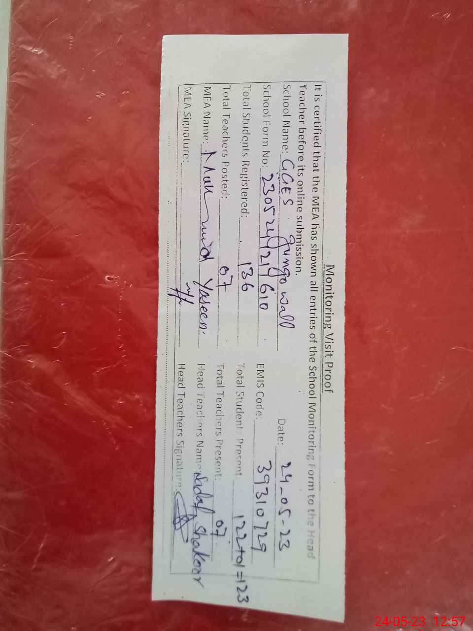 | Certified that this School was Inspected by the Undersigned MEA/DMO Today and the Information Stated Above is as Per Record. | |||||