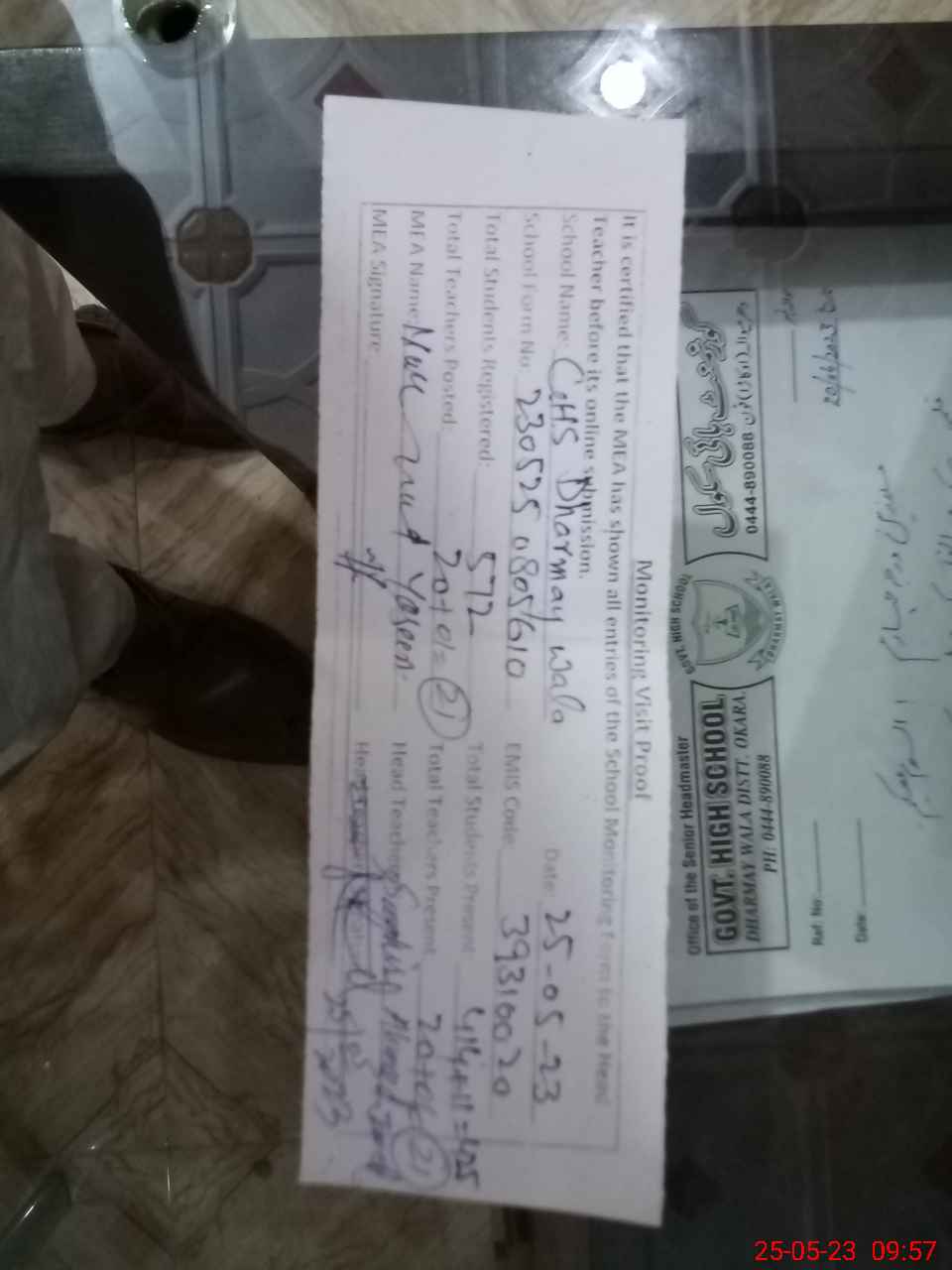 | EMIS Code: 39310020 | Name of School: GHS DHARMAY WALA | |||