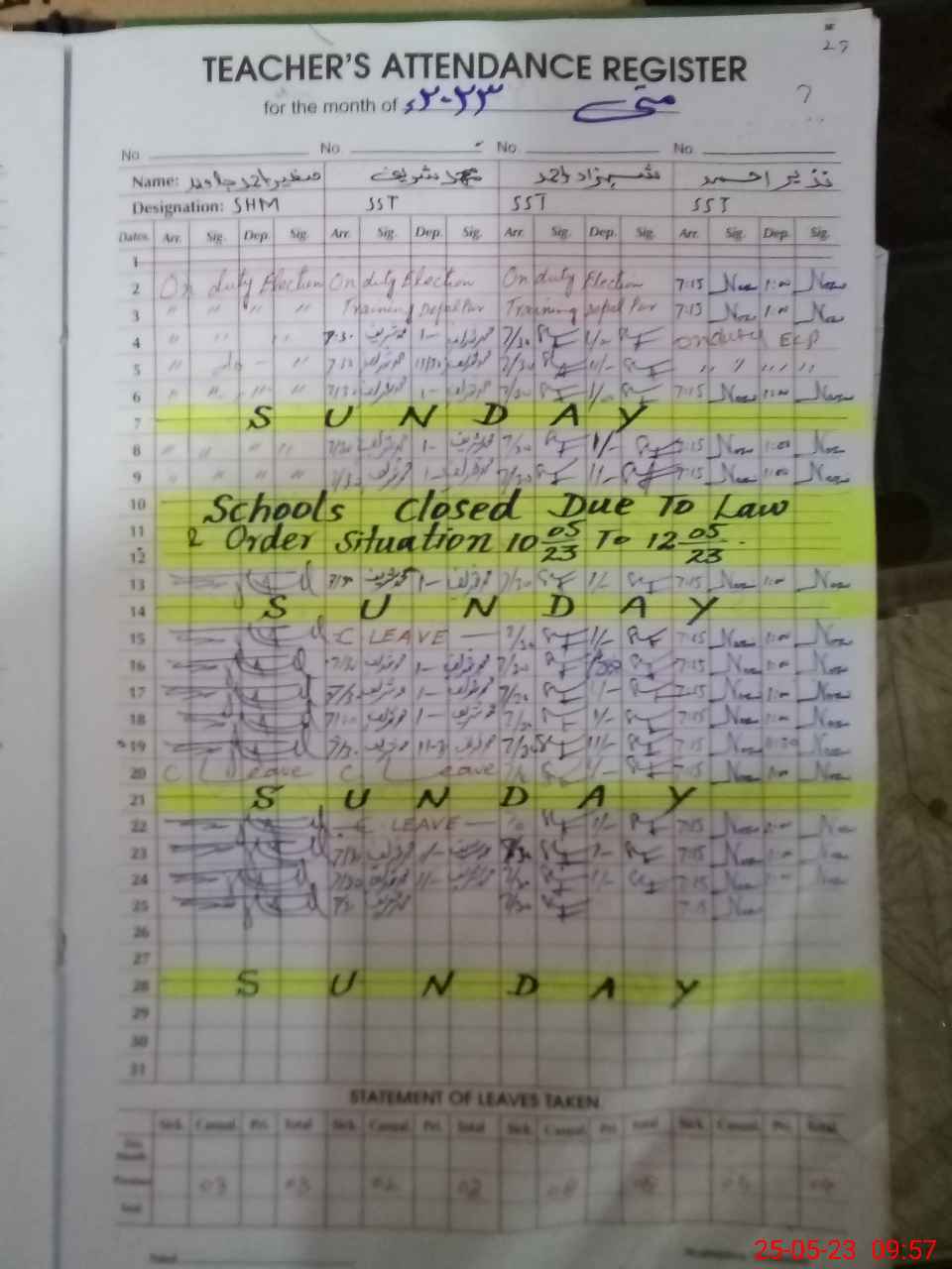 | 35**** | Su**** Sa**** | ESE | Contract | 0 | 0 | 0 | 0 | 0 | 0 | 0 | 0 | 0 | Exam Duty |