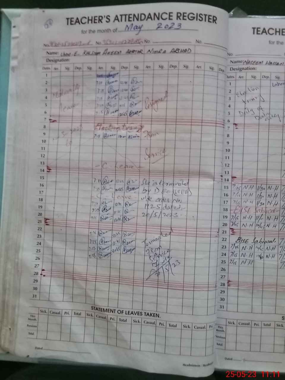 | Leave | Duty | Absent | Maternity | Medical | Ex- Pak |