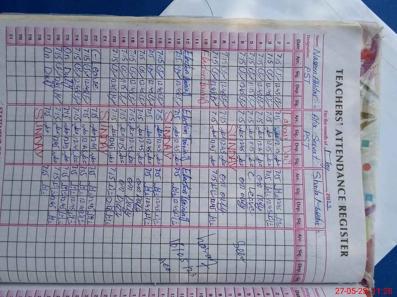 | 33**** | Na**** Ak**** | PST | Regular | 0 | 8 | 0 | 0 | 0 | 0 | 0 | 0 | 0 | Exam Duty |