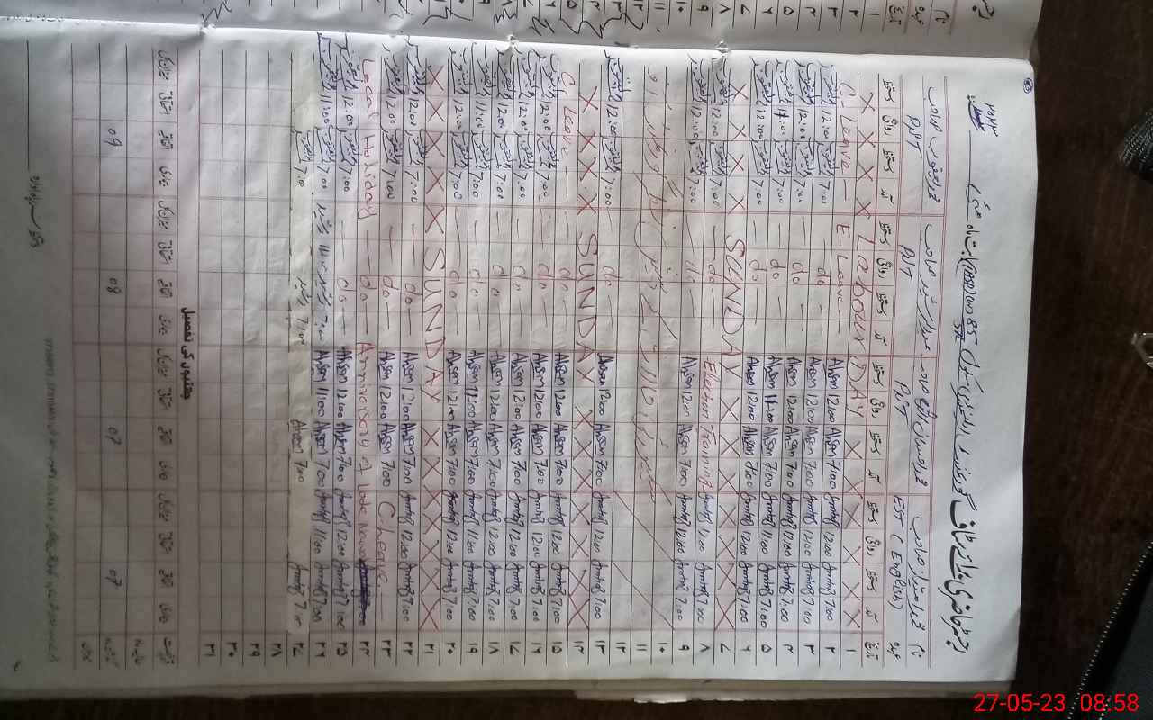 | CNIC | Full Name | Designation | R/C | Absence During Last Calender Month |