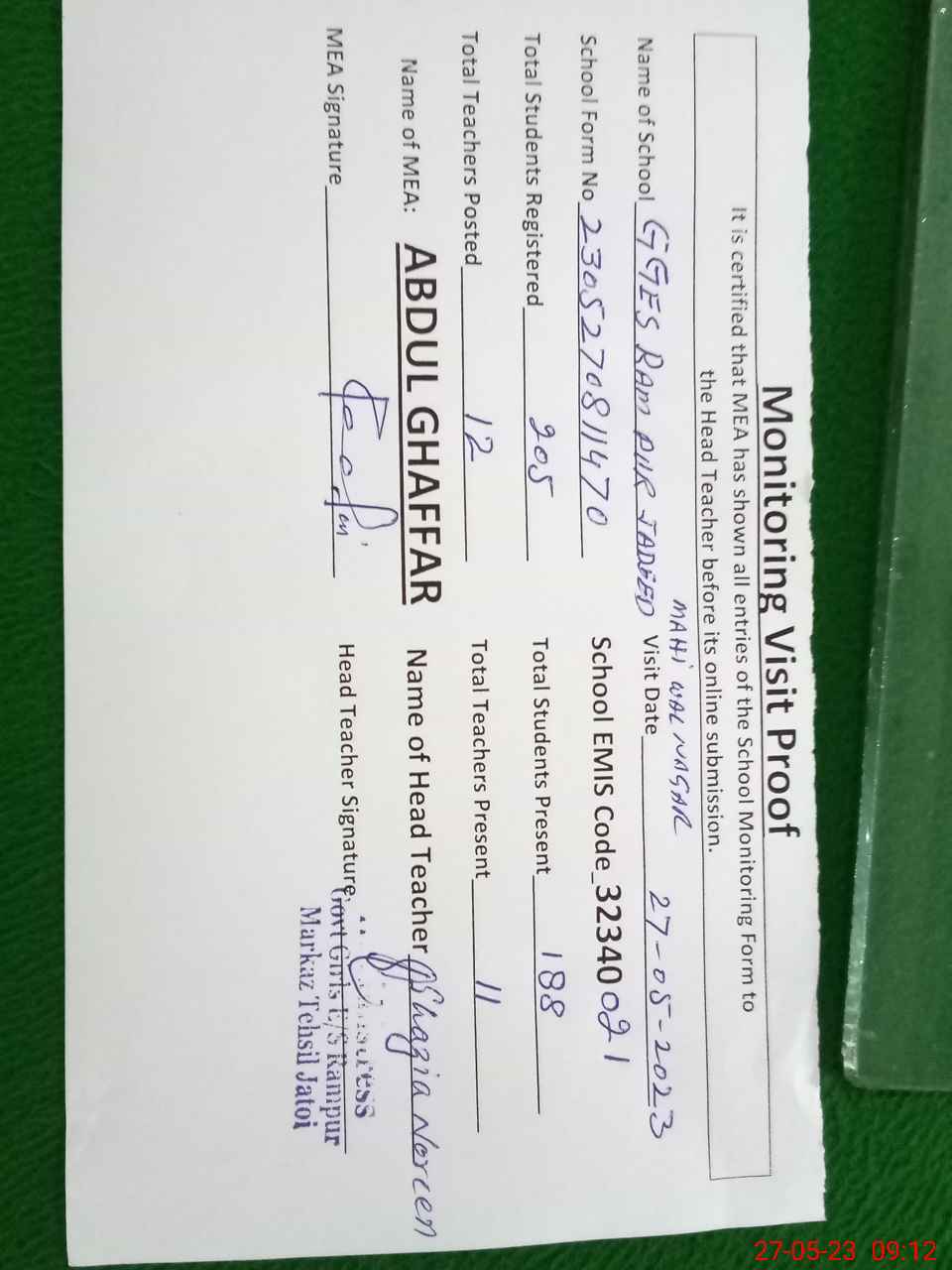 | EMIS Code: 32340021 | Name of School: GGES RAM PUR JADEED (MAHI WAL NAGAR) | |||