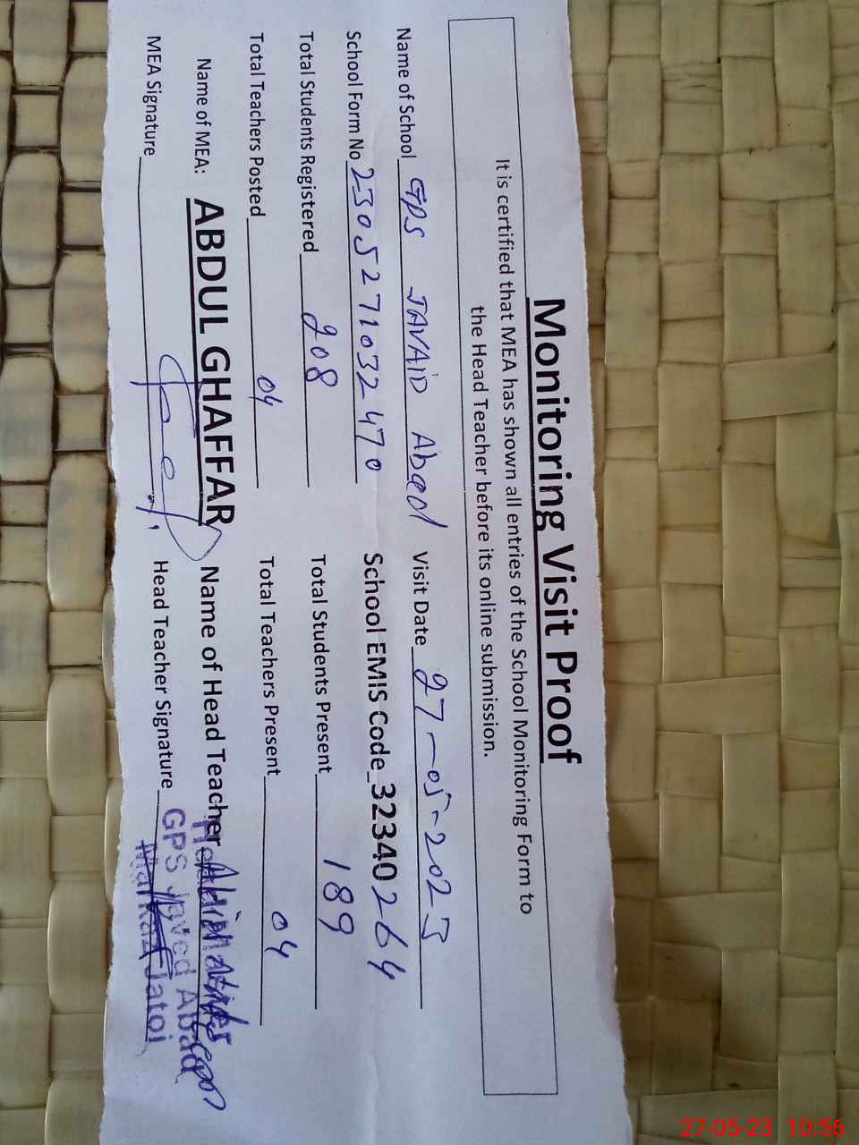 | EMIS Code: 32340264 | Name of School: GPS S JAVAID ABAD | |||