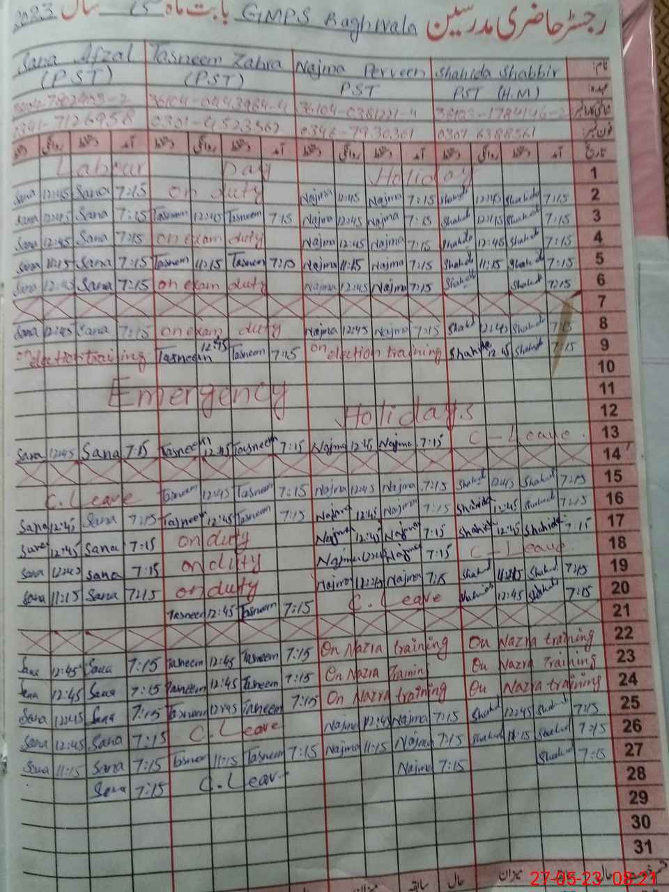 | Leave | Duty | Absent | Maternity | Medical | Ex- Pak |