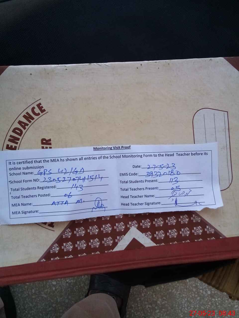 | EMIS Code: 39320180 | Name of School: GPS CHAK 42/G.D | |||