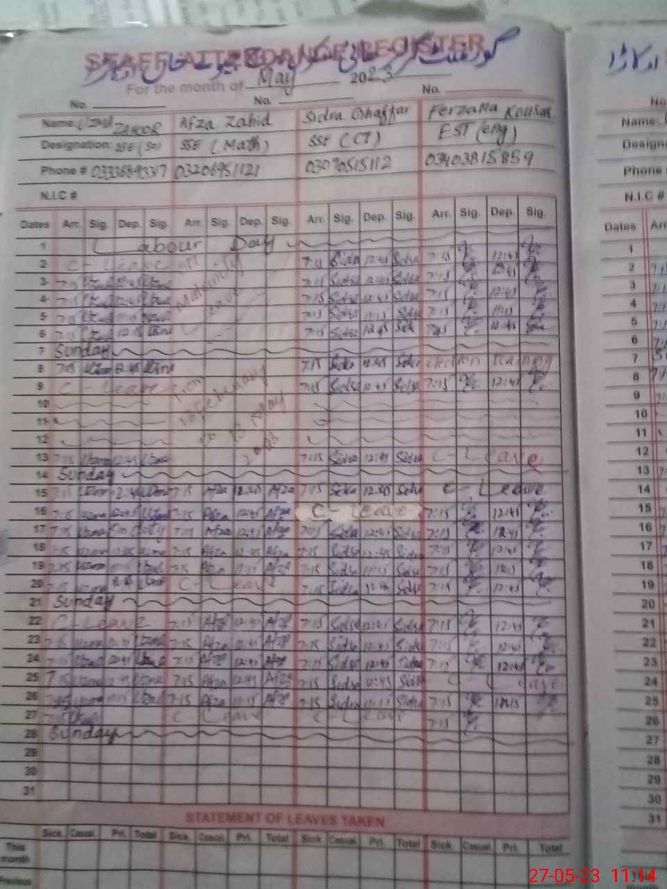 | 35**** | An**** Iq**** | PST | Regular | 2 | 0 | 0 | 0 | 0 | 0 | 0 | 0 | 2 | Exam Duty |
