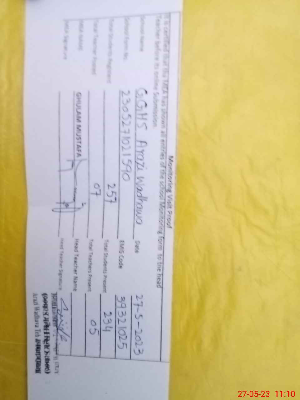 | EMIS Code: 39321025 | Name of School: GGHS ARAZI WADHAVA | |||