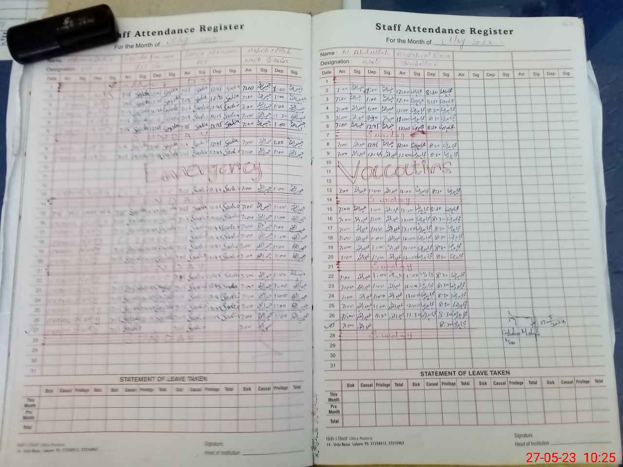 | Leave | Duty | Absent | Maternity | Medical | Ex- Pak |