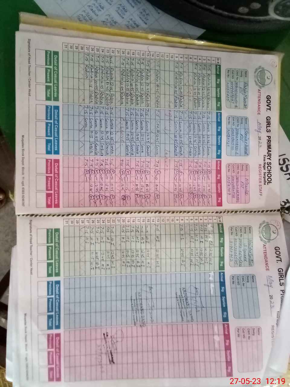 | CNIC | Full Name | Designation | R/C | Absence During Last Calender Month |