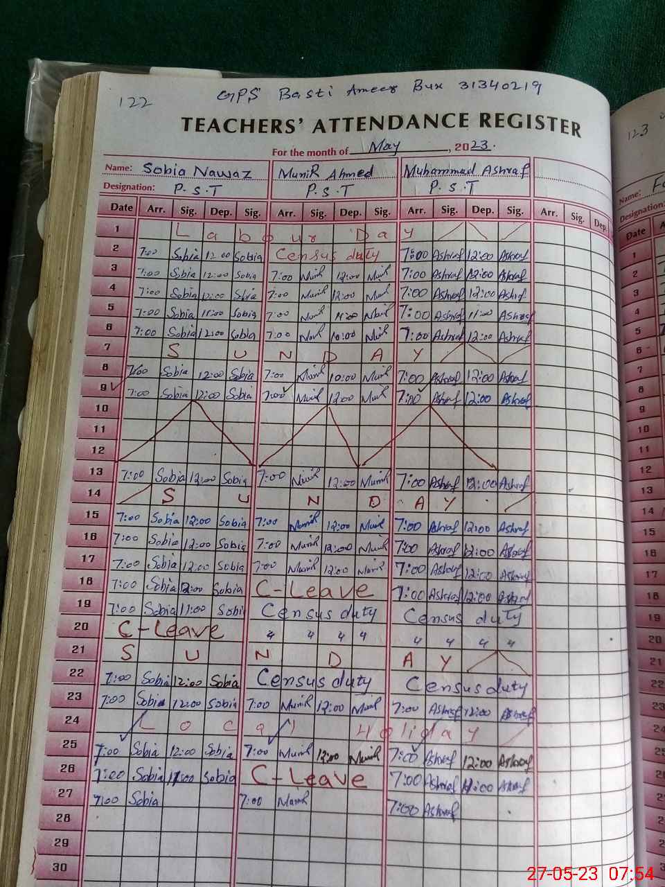 | Name: Mu**** Ah**** Designation: (School Headmaster's/Headmistress's) PST Phone/Cell Number: 03**** |