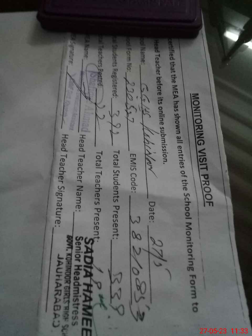 | EMIS Code: 38210853 | Name of School: GGHS KOHINOOR MODEL JAUHARABAD | |||