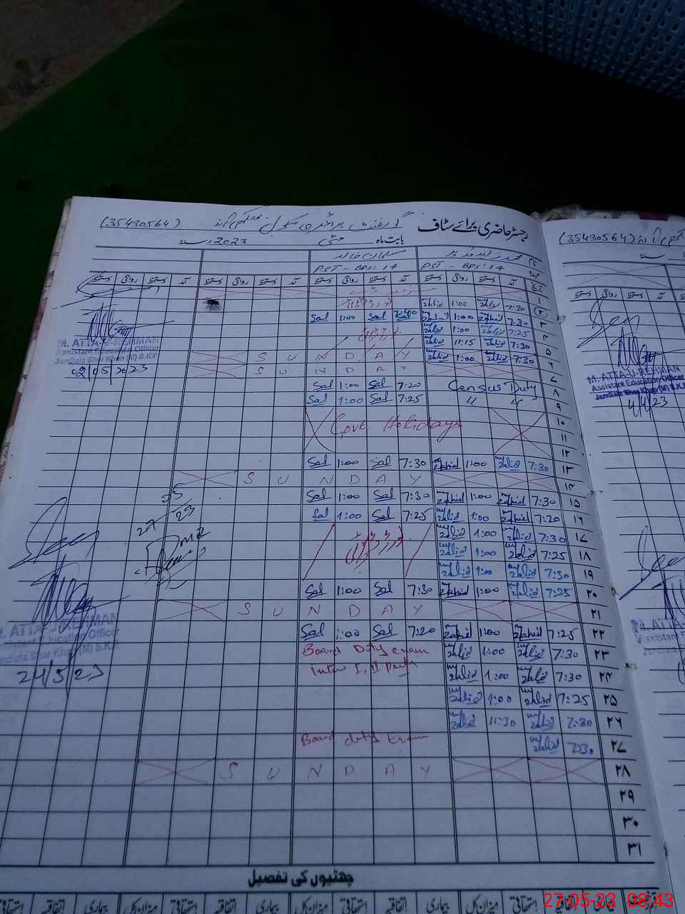 | 35**** | Sa**** Kh**** | Contract | 0 | 23 | 0 | 0 | 0 | 0 | 0 | 0 | 0 | Exam Duty | |