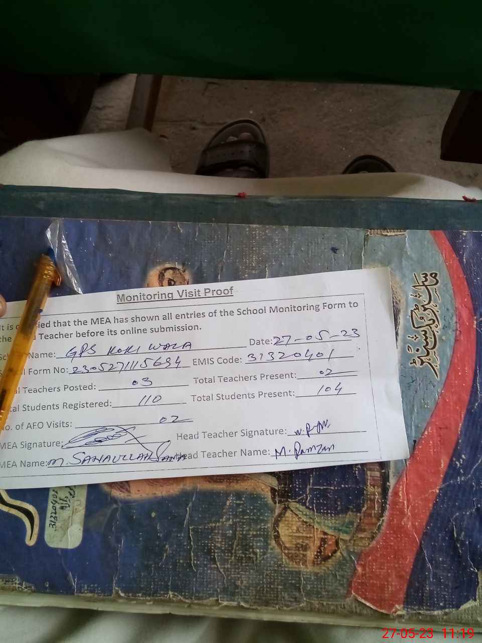 | Attendance Register | Head Teacher | MEA with School | Visit Proof |
