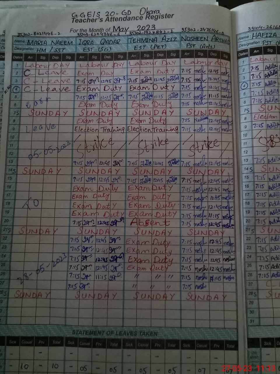 | Leave | Duty | Absent | Maternity | Medical | Ex- Pak |