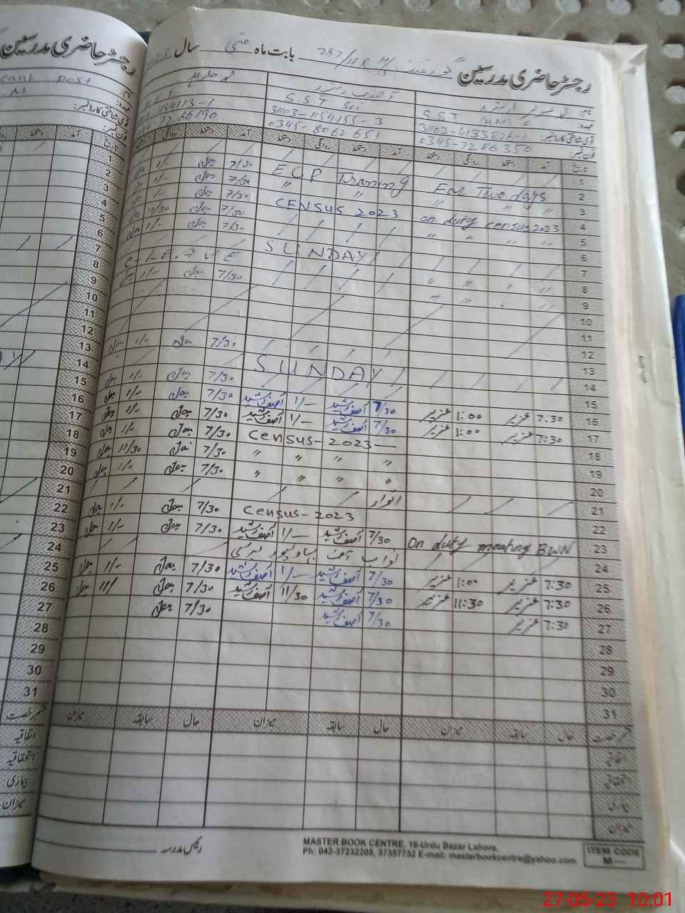 | CNIC | Full Name | Designation | R/C | Absence During Last Calender Month |