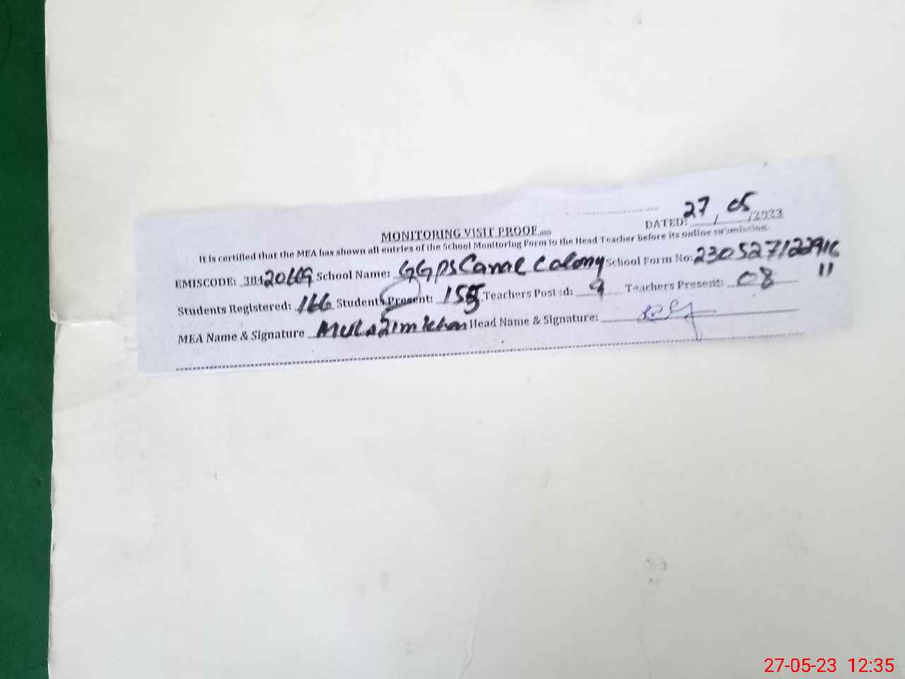 | EMIS Code: 38420669 | Name of School: GGPS MC KANAL COLONY SARGODHA | |||